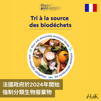 法國政府於2024年1月開始,強制要求所有個人、住宅及商業將有機廢棄物分類回收,目標將本來人均每年82公斤的廚餘廢料減少。