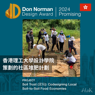 由香港理工大學設計學院學者策劃的「泥玩」(Soil Trust)計劃,開展社區養分循環回收,讓來自廚房的有機資源能夠再生土壤生態、推動本地作物和環境生物多樣性。 此計劃最近獲Don Norman Design Award肯定為Promising Project。